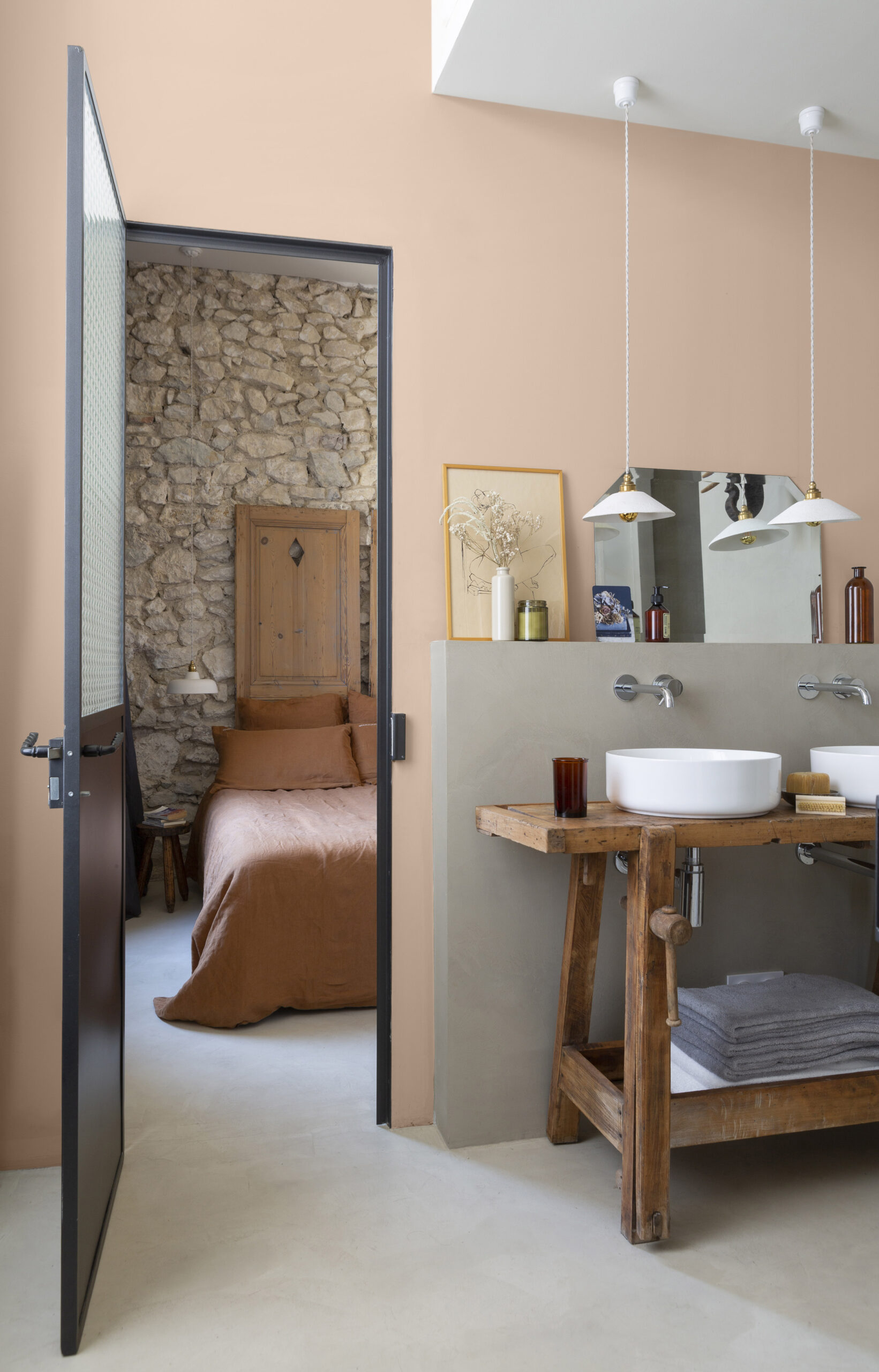 De l’Alsace à la Lorraine en passant par les Vosges, le grès rose représente la pierre emblématique de nombreux monuments, châteaux et églises. Avec sa capacité à sublimer la lumière tout au long de la journée, cette teinte changeante s’affirme comme la couleur solaire par excellence. Sa nuance douce et douillette s’avère particulièrement en affinité avec un orangé chaud pour un effet camaïeu intense. On pourra aussi l’adoucir avec des neutres grisés clairs.