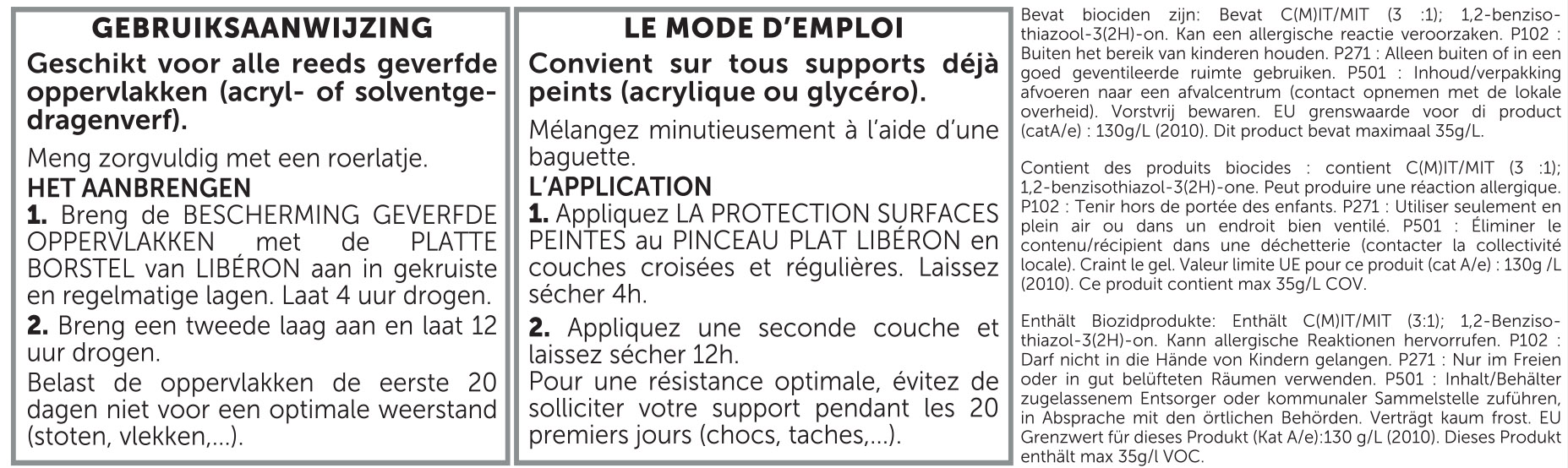 La Protection Surfaces Peintes Libéron s’applique sur tous types de peinture Acrylique ou Glycéro.